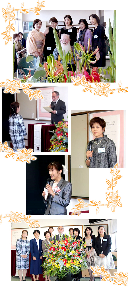 同会場にてルビー祝・銀祝式典が執り行われました。コリンズ神父様よりご祝辞、現学長山本浩先生より祝状がお一人お一人に授与されました。2期生代表 和田一美さん(旧姓 杉村さん)と16期生代表 吉田恵理子さん(旧姓 八名さん)の挨拶は下記からご覧ください。