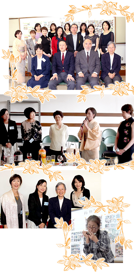 かつて授業を受けた思い出深い139教室にて祝賀パーティが開催されました。教職員皆さまと共に参加者皆さん当時に戻ったような気持ちで歓談を楽しまれていました。2期生による飛び入りのハーモニカ演奏もあり、賑やかな、そして温かい宴となりました。