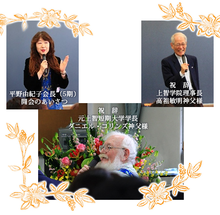 今年もSJ祭と同日に秦野キャンパスにて、卒業40周年をお祝いする4期生のルビー祝、25周年をお祝いする18期生の銀祝の式典を開催しました。式典に先立ち、髙祖敏明上智学院理事長、第2代学長ダニエル・コリンズ神父様の司式により、聖ヨハンナ聖堂にて卒業生のための記念ミサが執り行われました。式典では山本学長より祝状授与、各期の代表、SJ祭実行委員長、ソフィア会奨学生2名からのあいさつ、その後のパーティーではみなさんで和やかに再会を楽しんでいらっしゃいました。
