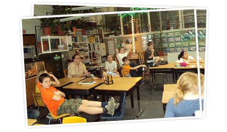 子どもたちの反応は・・・というと、キンダーの時から毎年していて慣れているということもあるのだろうし、5年生は聞く側だけでなくキンダーのクラスで教える側になるということもあるのだろう、手を上げて自分の意見を積極的に話してくれる子がほとんどで、こちらも楽しめた。と同時に、この「授業ではない時間」を利用して算数の補習をするようで、それに呼ばれた生徒の出入りも多く、落ち着かないところもある。また、好きな場所に椅子を持って移動してもいいことから、あまり興味を持っていない子どもは後ろのほうで手持ち無沙汰にしてもいた。