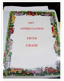 「教材」は学年ごとにきっちりとファイルされている。たとえば5年生ならば、アメリカン・アートの有名どころが年代別に選んであり、一回分だいたい5点ぐらい、作者と作品についての解説が記されている。開拓時代、南北戦争後、第二次大戦ごろ、戦後、そして60年代、70~80年代、といった感じで全7回。