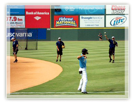 翌日、「ユニフォームを着てこい、ということはもしかして・・・」「いや、期待しすぎると後でがっかりするから・・・」などとあれこれ思いを巡らしつつ4時前に行ってみると、レイが「中に入ってこい」というジェスチャーで呼んでくれたそうだ。恐る恐るグラウンドに入るとまずはレイとキャッチボール。そこへ監督がバットをもって出てきて、息子はショートのポジションへ。なんと試合前のフィールドで、監督直々のノックを受けさせてもらったのだ。それだけでは終わらない。ウォーム=アップに出てきたほかの選手たちに混じってストレッチをしていると、「靴のサイズ、いくつだ?」とレイに訊かれる。何とかの大足、の息子がサイズを答えると、レイがどこかへ消え、新品のスパイクを持って戻ってきてくれた。プロの選手のスパイクは上等で、「母さん、軽くて丈夫で、とにかくすごいんだよ」と息子も大興奮で電話をしてきた。