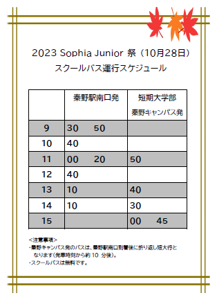 ホーム 2023年10月28日(土)秦野キャンパス ホームカミング追加ご案内
