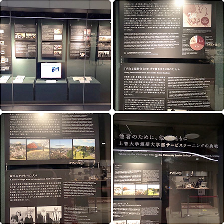 また、四谷キャンパスの6号館1階ロビーでは、「上智大学短期大学部サービスラーニングのあゆみ」についてのパネルが展示されています。懐かしいバリー先生やコリンズ先生の写真もあります。令和6年1月中旬までの展示期間となりますのでぜひご覧ください。