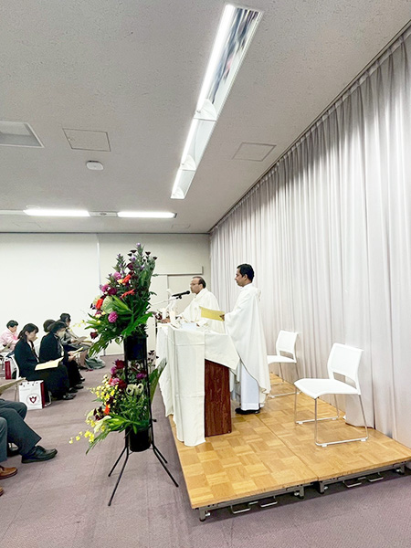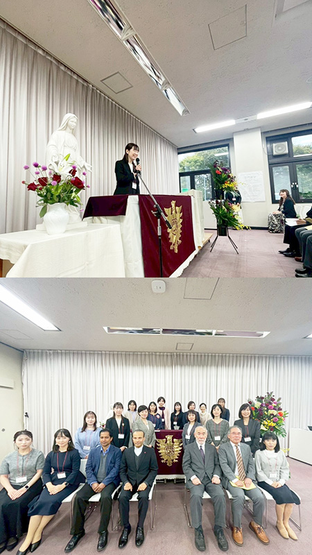 10月の寒さを感じる頃、感謝のミサ(4号館411教室)、初の金祝、ルビー祝・銀祝式典(4号館411教室)及び茶話会(4号館412教室)を開催しました。