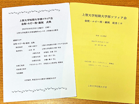 すでにお知らせしている 3 月のホームカミングでは短期大学部ソフィア会最後の総会を開催し、そこで正式にご報告いたしますが、2026 年 4 月から四谷の上智大学ソフィア会に移行することになりました。ルビー祝の皆さまの 10 年後の金祝、銀祝の皆さまの次のルビー祝は、四谷キャンパスで行う予定です。