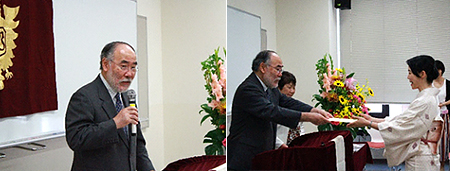 山本浩上智大学短期大学部学長よりそれぞれへ祝状授与とお祝いの言葉をいただきました。